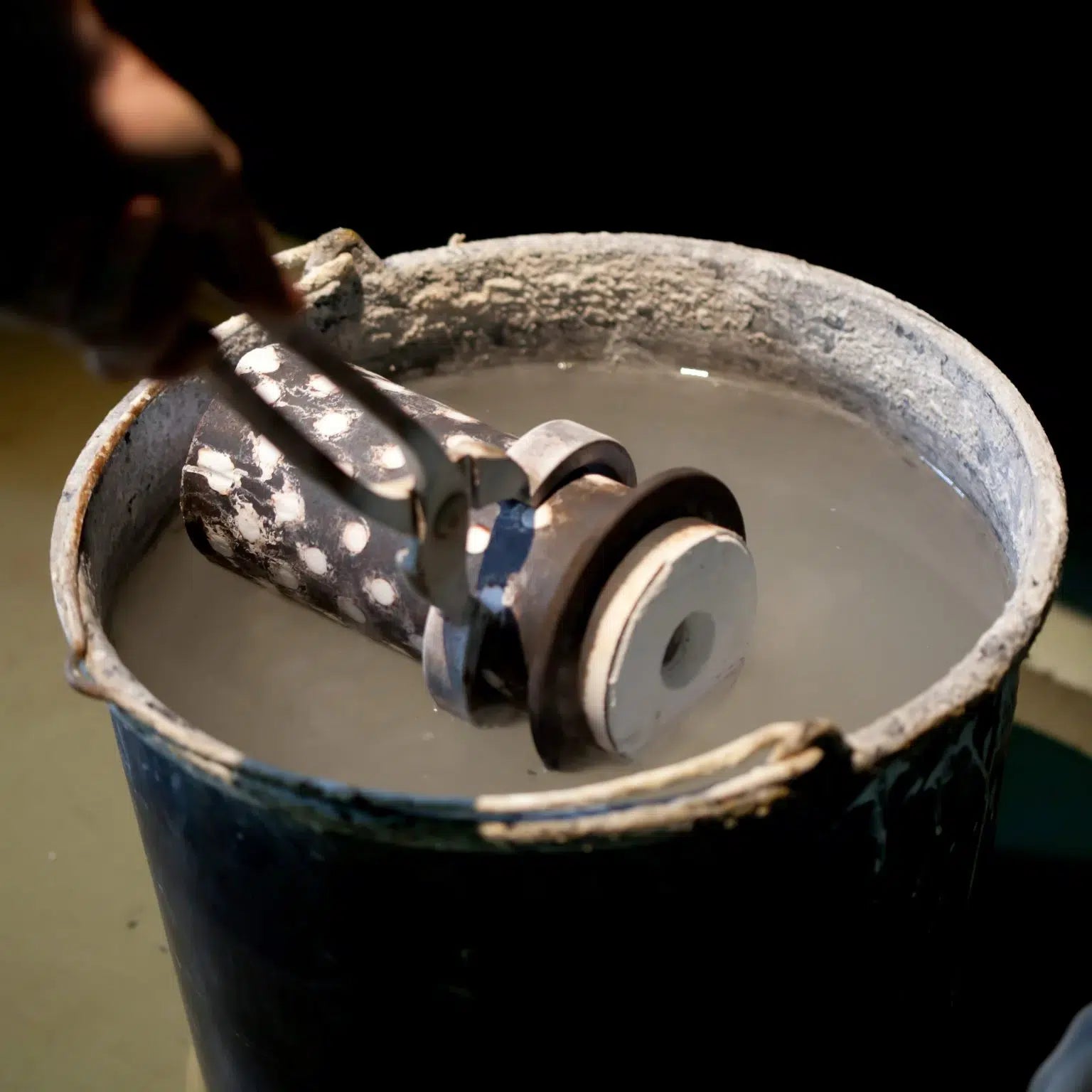 Le fondeur commence ici le travail de « fonte à cire perdue ». La première étape consiste à recouvrir l’arbre en cire de plâtre avant de le placer dans un four. Sous l’effet de la chaleur, le plâtre durcit, la cire fond et s’écoule, laissant à l’intérieur du moule l’empreinte du bijou. L’or 18K est fondu et versé à l’intérieur du moule en plâtre. Ce dernier est ensuite plongé dans un bain d’eau froide afin d’être brisé et de libérer le bijou en or.